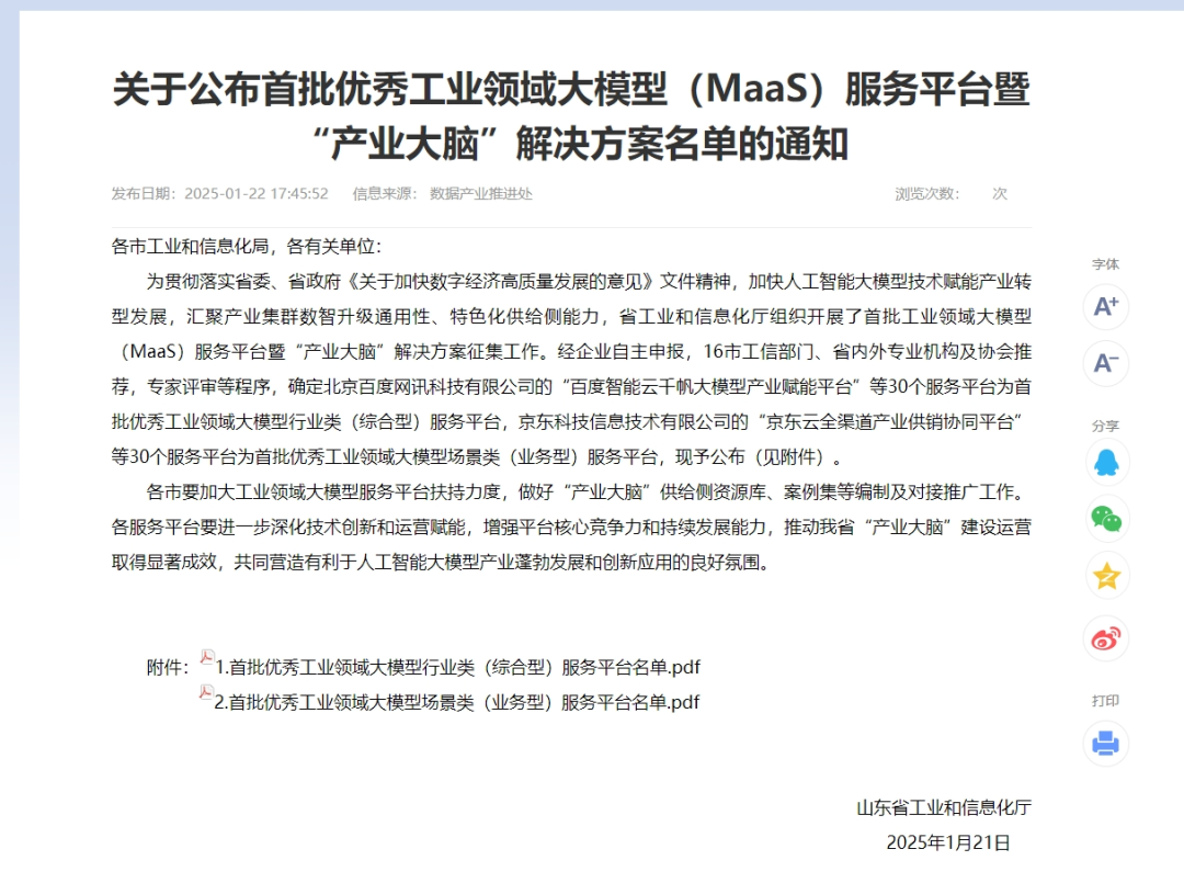 2025年的第一封喜報丨天意機(jī)械榮獲山東省首批優(yōu)秀工業(yè)領(lǐng)域大模型服務(wù)平臺